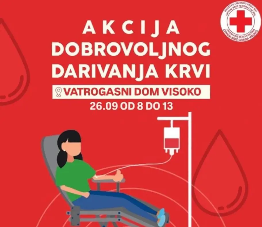 Crveni križ Visoko organizuje treću redovnu akciju dobrovoljnog darivanja krvi, a koja će biti održana 26. septembra ove godine u prostorijama Vatrogasnog doma...