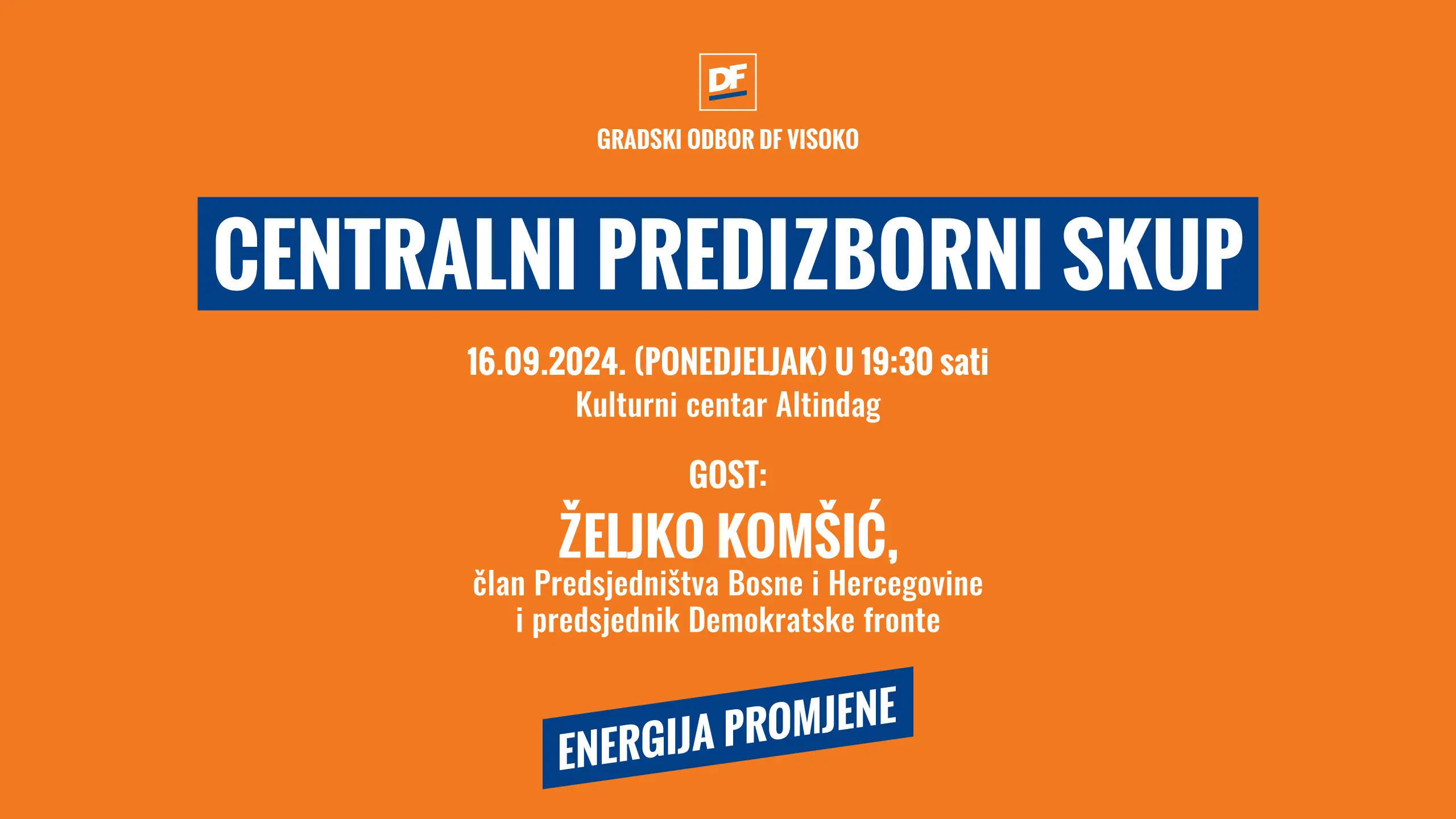 Cijenjeni sugrađani, pozivamo vas na Centralni predizborni skup Demokratske fronte Visoko, na kojem će biti predstavljeni kandidati za Gradsko vijeće Visoko na predstojećim...