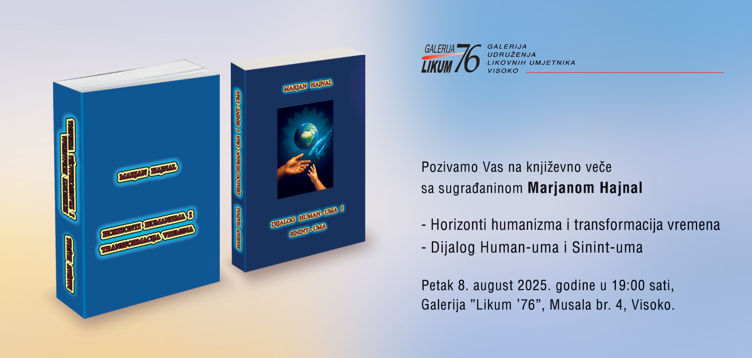 Večeras, 8. augusta, s početkom u 19:00 sati, u galerijskom prostoru UGLU Likum 76 biće održana promocija dvije knjige našeg sugrađanina Marjana Hajnala....