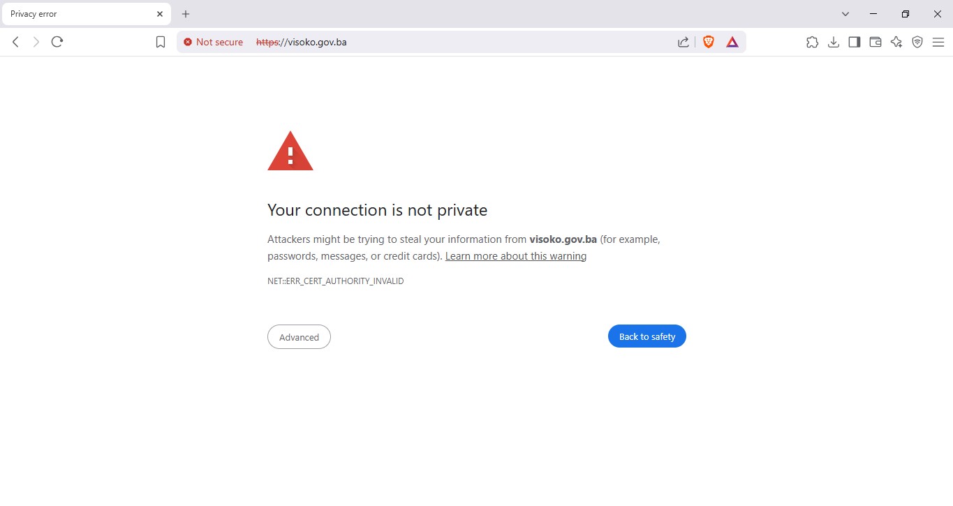 Zvanična web stranica Gradske uprave Visoko trenutno je nedostupna javnosti. Posjetom stranici korisnici dobijaju sigurnosno upozorenje, a razlog je istek SSL certifikata, što...