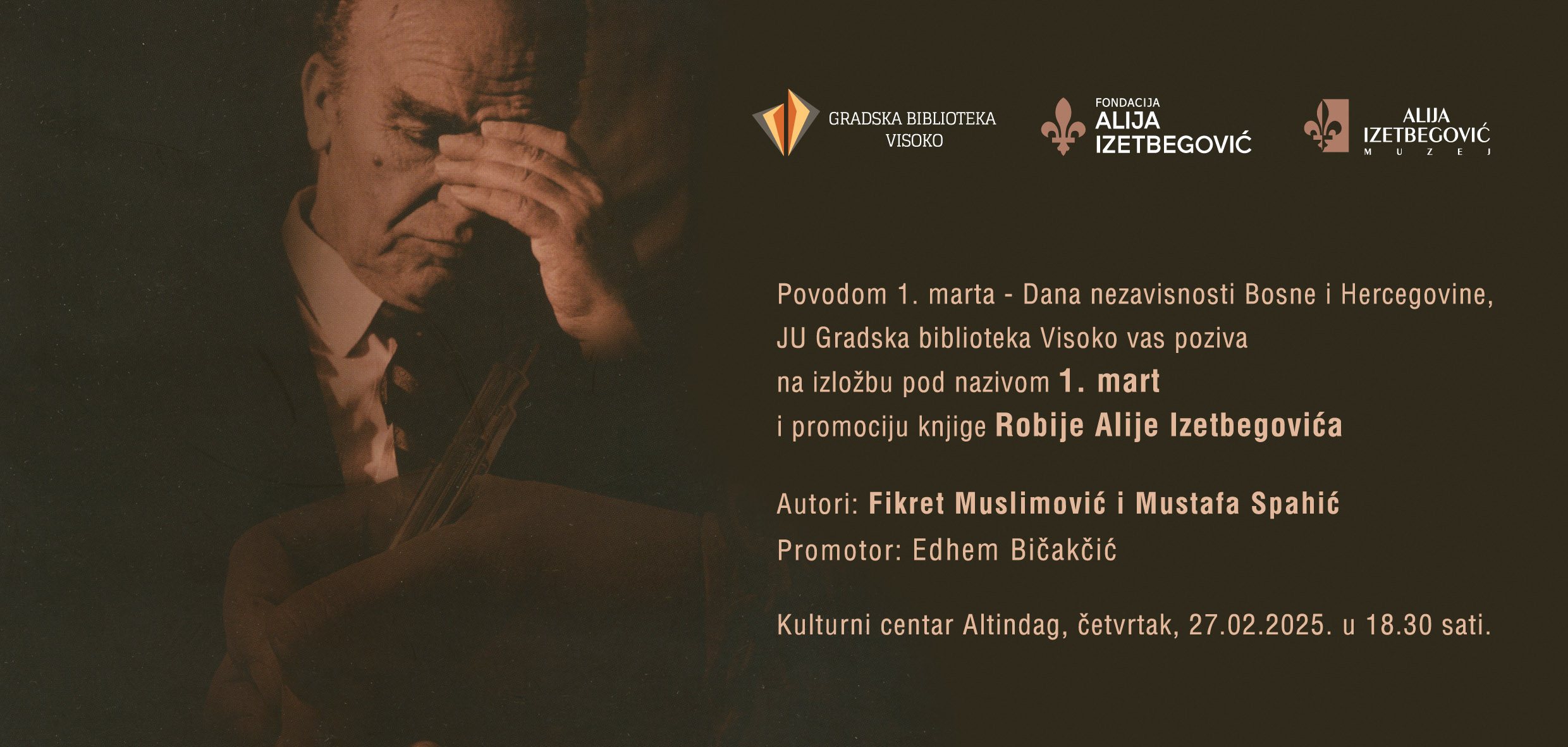 Zadovoljstvo nam je pozvati vas na promociju knjige “Robije Alije Izetbegovića”, autora Fikreta Muslimovića i Mustafe Spahića, u izdanju Fondacije “Alija Izetbegović”. Promocija...