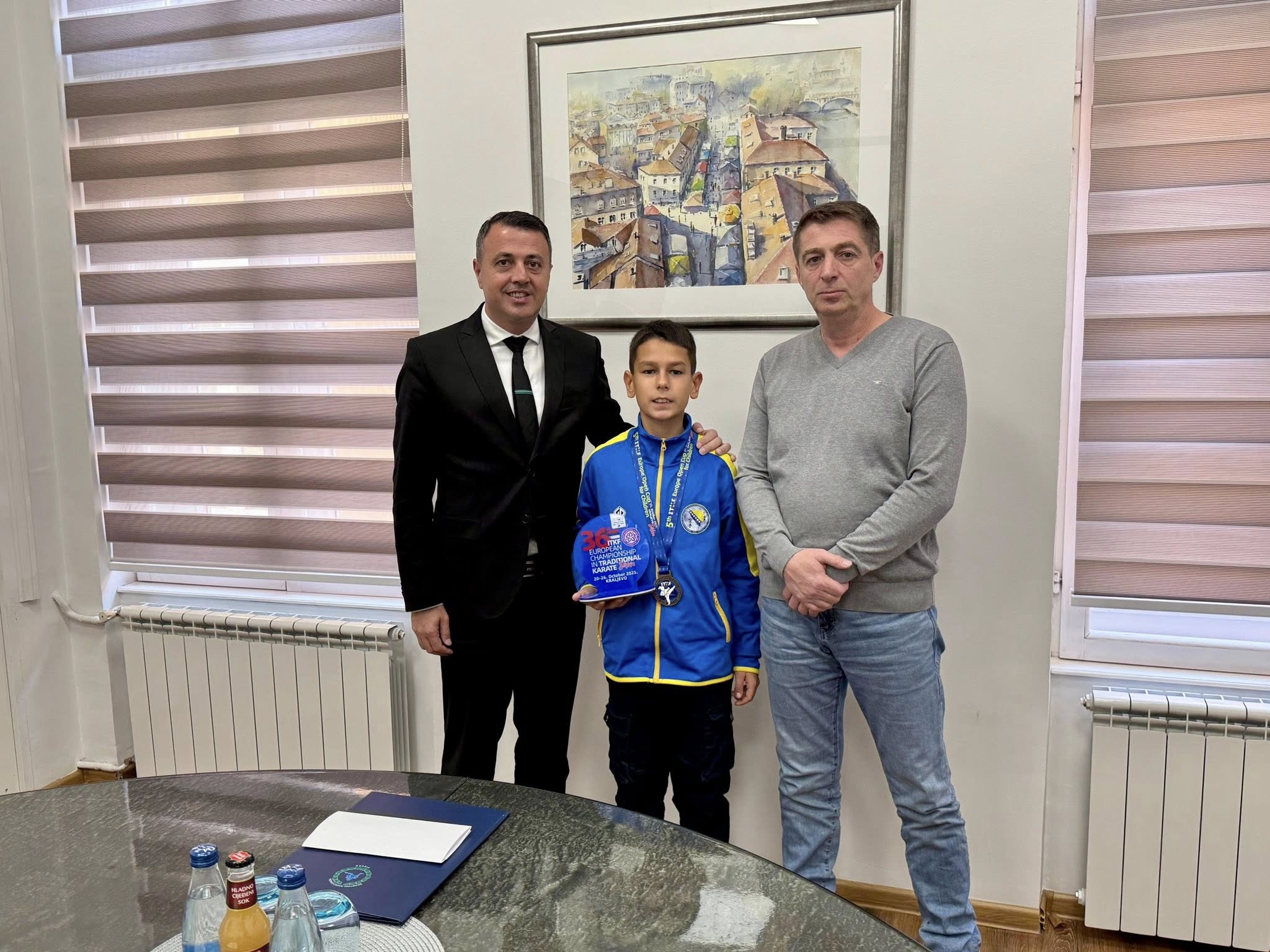 Gradonačelnik Visokog Mirza Ganić ugostio je mladog karatistu Ismaila Lemeša i njegovog trenera Harisa Mulahasanovića iz Karate kluba Fudokan Visoko, povodom osvajanja bronzane...