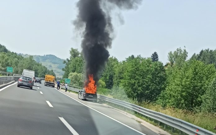 ZAPALIO SE AUTOMOBIL NA AUTOPUTU SARAJEVO – PODLUGOVI 21. Juna 2023. Na autoputu Sarajevo – Podlugovi upravo gori jedan automobil. Vatrogasci su na putu. Vozače pozivamo na oprez, kako javljaju članovi Viber grupe Crne hronike, saobraćaj je trenutno usporen na ovom dionici.