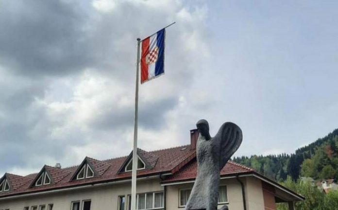 Zastava takozvane “Herceg-Bosne” ponovo je postavljena u dvorištu crkve u Varešu.