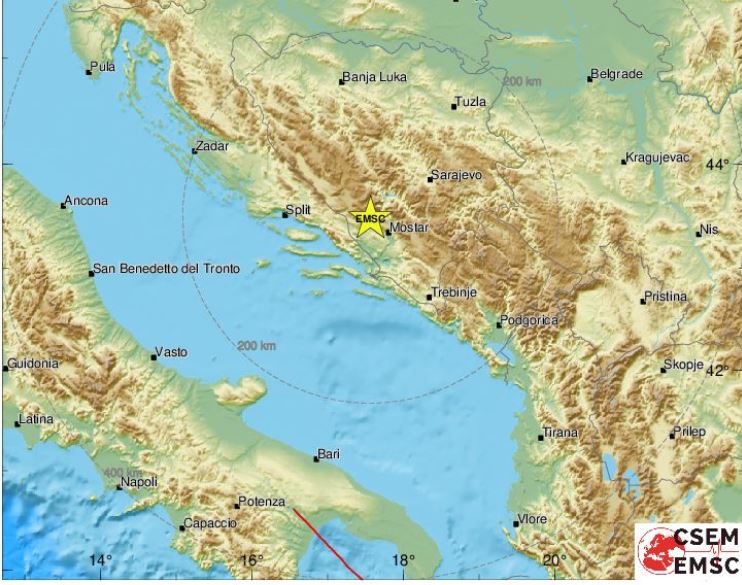Zemljotres jačine 4,8 stepeni jutros nešto poslije 8:00 sati pogodio je Bosnu i Hercegovinu, tačnije područje oko Mostara.